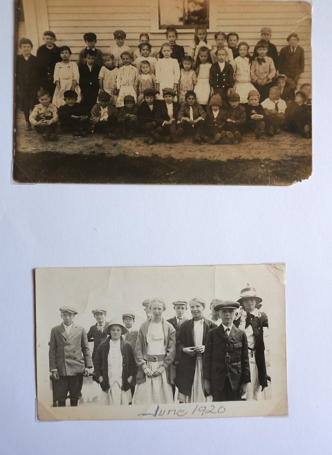 Two photos: 1. Picture of young children - no names. 2. Picture of children in the upper grades. Photo taken June 1920. No names.