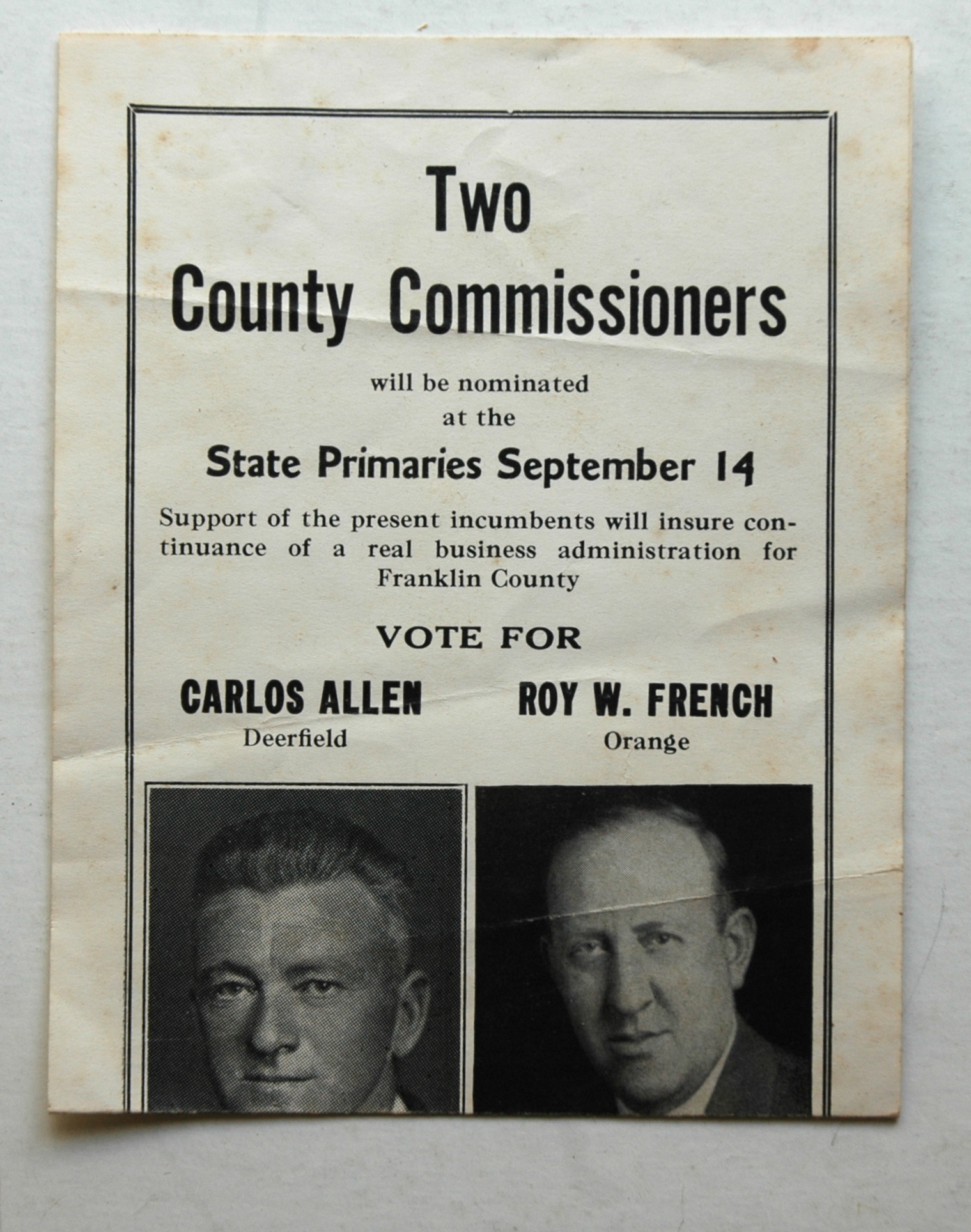 An ad for a state primary for County Commissioner