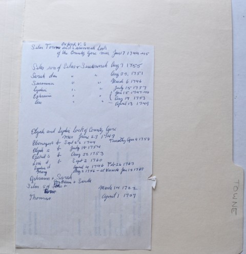 File consists of 1 handwritten sheet by C. Morse giving Town(e) family history.